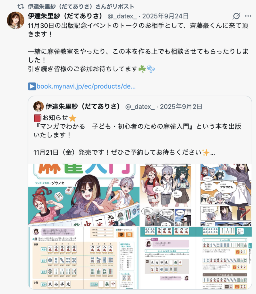 ちなみに伊達さん、『マンガでわかる 子ども・初心者のための麻雀入門』という本も出版されました。